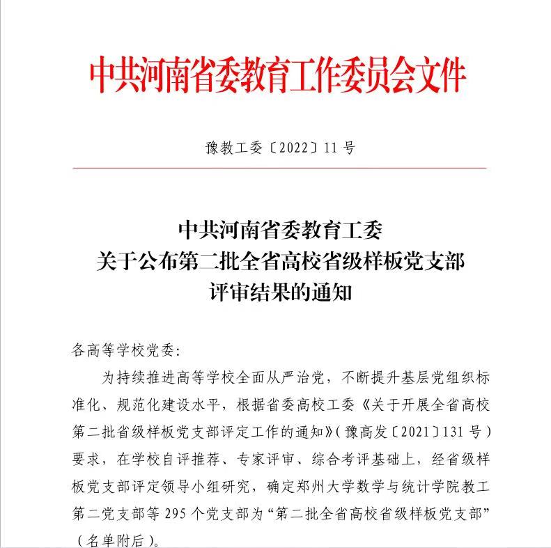 近日,中共河南省委教育工委公布了第二批全省高校省级样板党支部评审结果,我校文化旅游学院教师党支部成功获评“第二批全省高校省级样板党支部”,充分展现了我校基层党建工作取得的扎实成效。本次全省高校省级样板党支部评选实行学校自评推荐、专家实地评定和综合考评相结合的办法,对参评样板党支部进行综合研判、提出评定意见,经省级样板党支部评定领导小组研究确定,最终认定全省295个党支部为“第二批全省高校省级样板党支部”。