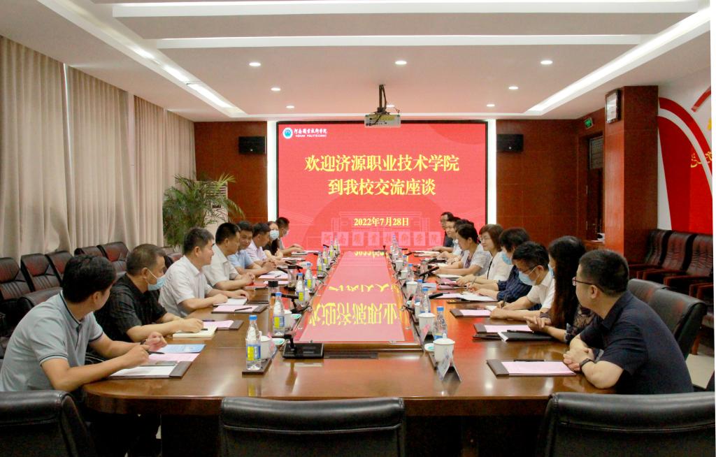 7月28日上午,济源职业技术学院党委书记王四战、党委副书记王向军,纪委书记李忠兴等一行8人来我校就党的建设工作等方面情况进行考察交流。校党委书记李桂贞出席会议并讲话,党政办、组织部、纪检监察室、智能制造学院、文化旅游学院、现代信息技术学院和信息中心等部门有关同志参加座谈交流。座谈交流会由党委副书记、纪委书记田华主持。