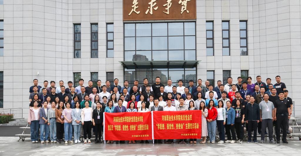 为深入贯彻落实河职院《关于深入开展学习贯彻习近平新时代中国特色社会主义思想主题教育实施方案》,加强党员日常教育管理,促进机关、二级学院党员干部间的学习、工作、思想交流,切实推动习近平新时代中国特色社会主义思想主题教育往深里走、往实里走、往心里走,6月3日至4日,机关党总支和现代信息学院党总支共107名党员,赴中共新乡市委党校联合开展了学习贯彻习近平新时代中国特色社会主义思想主题教育暨“学思想、强党性、担使命”主题党日活动。