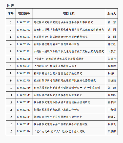 根据《关于2024年度校级党建创新项目结项验收工作的通知》要求,学校开展了项目结项评审工作。经教师个人申请,校内外专家评审,16项校级党建创新项目准予结项(具体见附表),现予以公示,公示期间如有异议,请联系党委组织部。