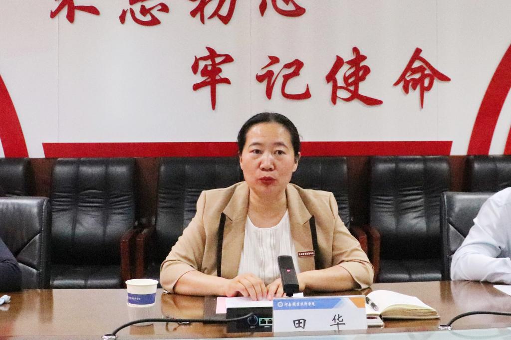 田华对皇甫超一行来访表示欢迎,并介绍了学校基本情况、办学特色,以及在党的建设、人才培养、专业调整、产教融合、科教融汇等方面的经验做法和取得的标志性成果。她指出,学校近年来精准对接国家和河南省重大战略目标,以高质量党建为引领构建“四五四五”党建工作体系,以人才培养为中心,以服务发展为宗旨,以促进就业为导向,形成一个坚持、两个聚焦、三个加强的“123”工作思路,打造“智能焊接看河职”为特色的国家高水平数控技术专业群品牌,形成聚焦服务河南省装备制造、电子信息和智慧服务三大产业领域的新格局,全力构建“3+5+N”科教融汇育人模式,打造科教融汇发展新高地,全力建设对河南省经济社会发展有贡献的高水平职业院校。她希望双方以此次学习交流为契机,共同成长、共同发展,为教育强省、教育强国作出高职院校应有的贡献。