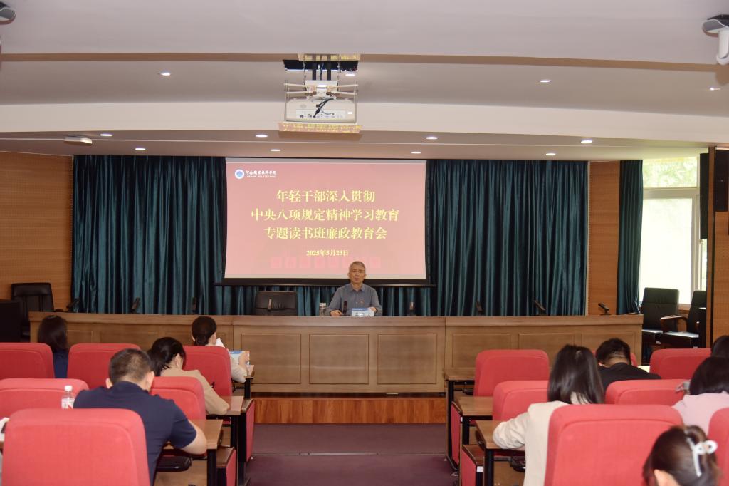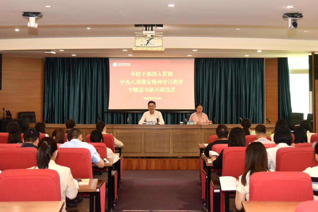 5月22日至23日,学校举办年轻干部深入贯彻中央八项规定精神学习教育读书班,认真学习《习近平关于加强党的作风建设论述摘编》和习近平总书记在中央党校(国家行政学院)中青年干部培训班开班式上重要讲话精神,推动年轻干部在深学细悟中提高理论素养,在锻造优良作风中凝聚干事创业力量。校党委书记厉励作开班动员讲话。校党委副书记、工会主席田华主持开班仪式和结业仪式,校党委委员、纪委书记盛兴文作廉洁教育专题报告。
