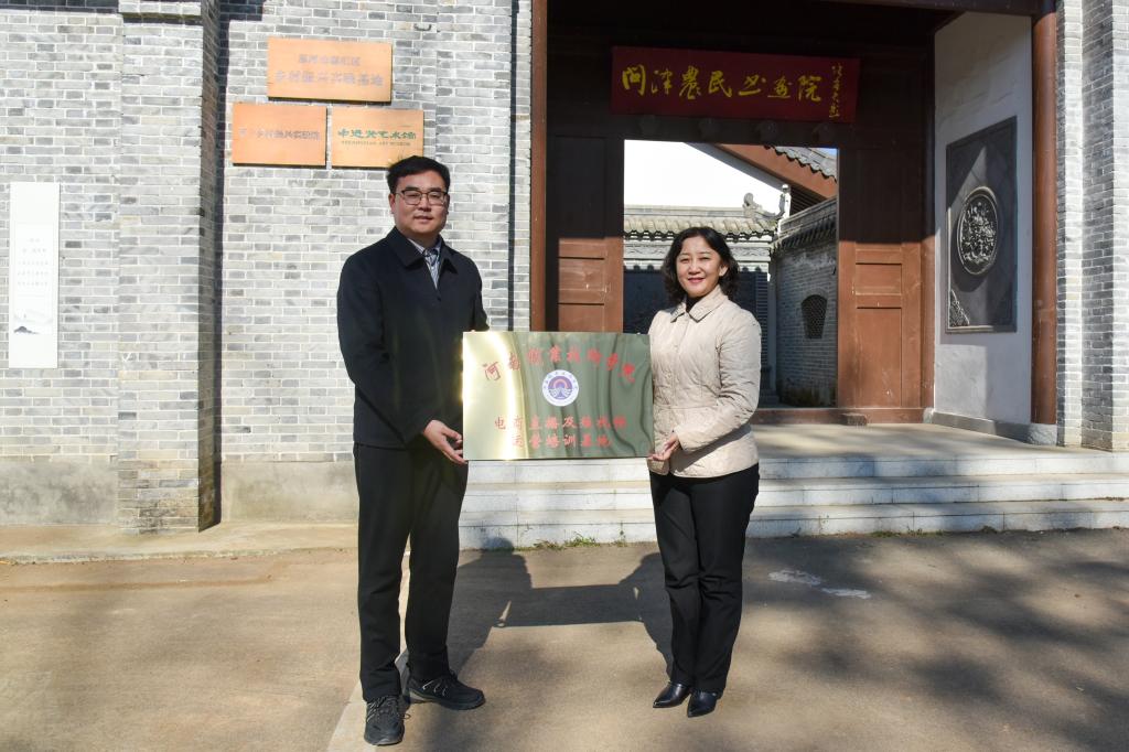 会后,夏新颜与王新卫共同为“tyc522cc太阳成集团电商培训基地”和“文化旅游学院教学实践基地”授牌。