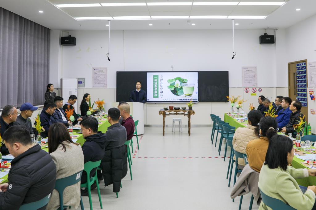 本次活动突破传统警示教育形式,采用“主题讲解+‘三省吾身·三道茶’体验+案例警示+互动交流”的融合模式,让廉洁教育更具感染力和实效性。活动伊始,邀请非遗传承人、二级茶艺技师彭凡围绕“清、淡、俭”的廉洁内涵展开主题讲解,阐述了茶文化与廉洁精神的内在联系,引导党员干部从茶文化中汲取廉洁修身的智慧。在“三省吾身·三道茶”体验环节,党员干部依次品尝清茶,在品茶的宁静氛围中对照初心使命、岗位职责和反面典型案例进行深刻思考。第一道茶思“初心是否坚定”,第二道茶思“纪律是否严明”第三道茶思“作风是否务实”,每一道茶都承载着自我检视、自我净化的要求,让大家在沉浸式体验中感悟廉洁真谛。