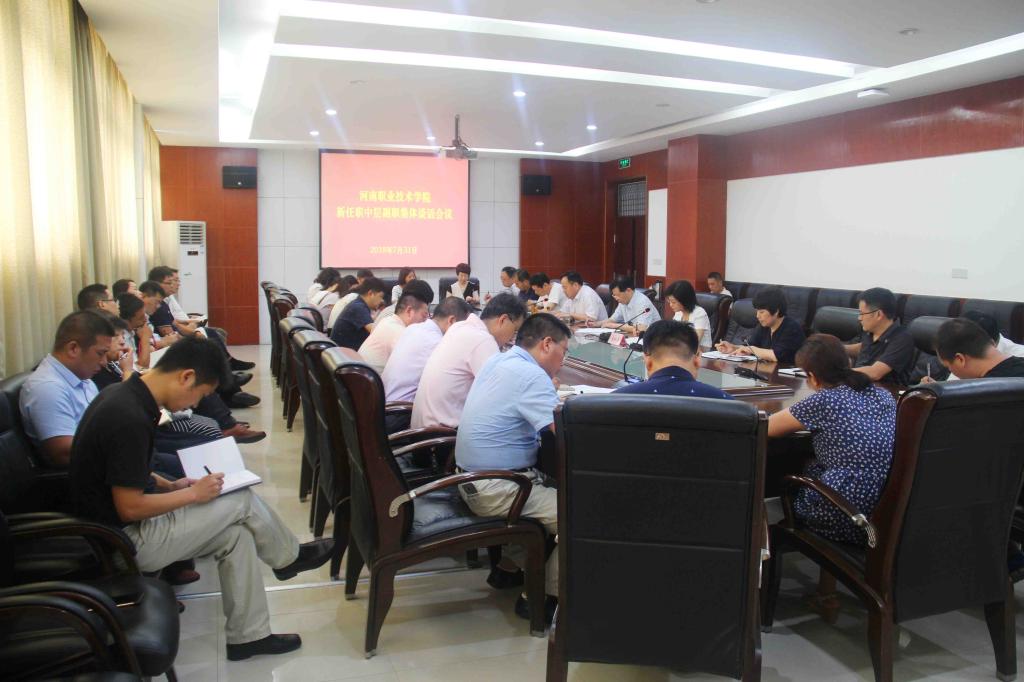 7月31日上午,我校在行政楼332会议室召开新任职中层副职干部集体谈话会议。党委书记李四清,党委副书记、校长李桂贞,党委副书记、纪委书记占江,部分中层正职及新任职中层副职出席会议。会议由院长李桂贞主持。