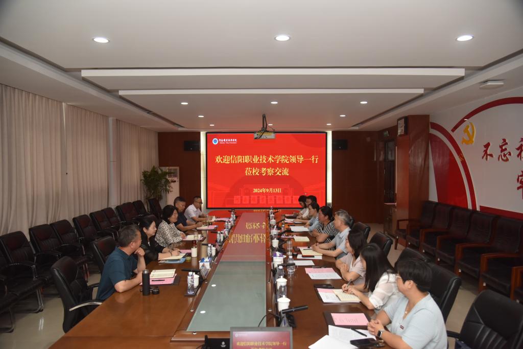 9月13日上午,信阳职业技术学院纪委书记蒋有红一行来校考察交流。校党委副书记、工会主席田华,校党委委员、纪委书记盛兴文出席座谈会,党委组织部、党委教师工作部、智能制造学院和现代信息技术学院等部门负责人和相关人员参会。座谈会由校党委委员、党委组织部部长杨华主持。